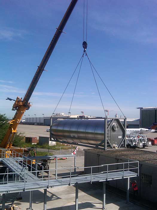 Nach fünfmonatiger Bau- und Montagearbeiten, wurde Ende September 2012 die neue Anlage für die Lagerung von Flugzeugenteisungsmittel fristgerecht abgenommen und dem Nutzer übergeben. Für den Winterflugplan 2012/2013 ist somit die Enteisung der Flugzeuge sichergestellt.